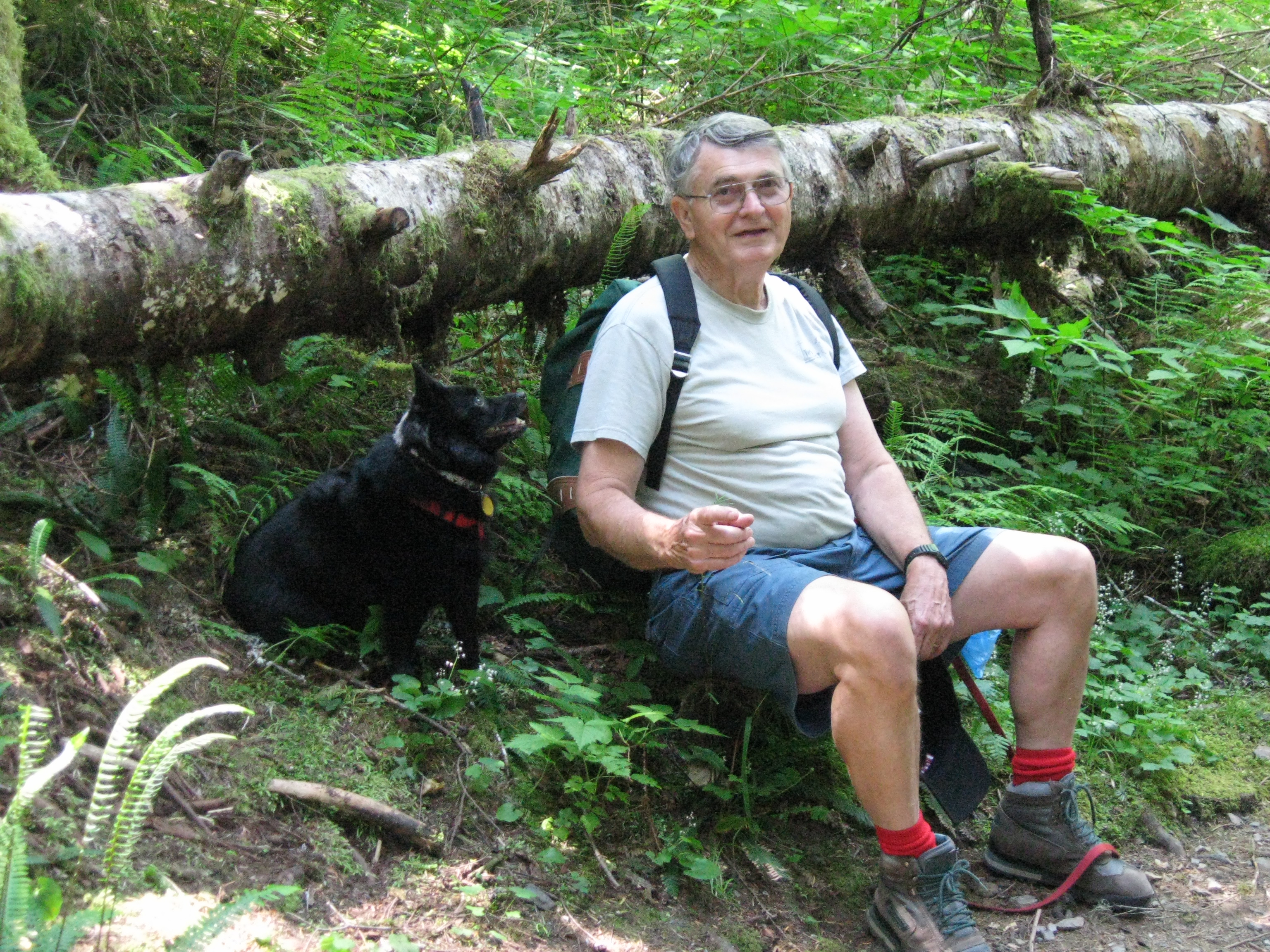 Yes the glories of the mountain and lake were wonderful metaphors of God’s presence but John’s presence throughout the walk was the real gift. He waited for me as I stopped to look at small flower and ferns. He didn’t quibble when I simply stopped to take in the view, losing myself in the landscape. John and Freddie made me laugh as they walked down the path in front of me and offered me a picture of memorable proportions.