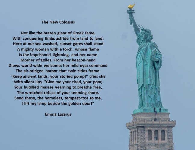 of Emma Lazarus’ poem, The New Colossus, found on the pedestal of the Statue