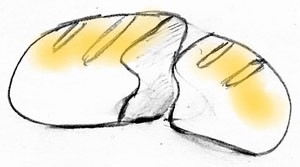 As I chanted the verses I made them my own and, in the process, I came to a quiet point, a still point of creation. I felt the bread take form beneath my hands. Soft dough becoming elastic and springy, and rolled into a ball Then I allowed the mystery to take place as it swelled into a soft white pillow. Taking that pillow and forming two loaves and baking them until they looked like gold was just as satisfying as any work of art. I was given a gift in the mystery of yeast, flour, milk, salt and butter. I offered the first slice of the warm bread to John, who pronounced it yummy.